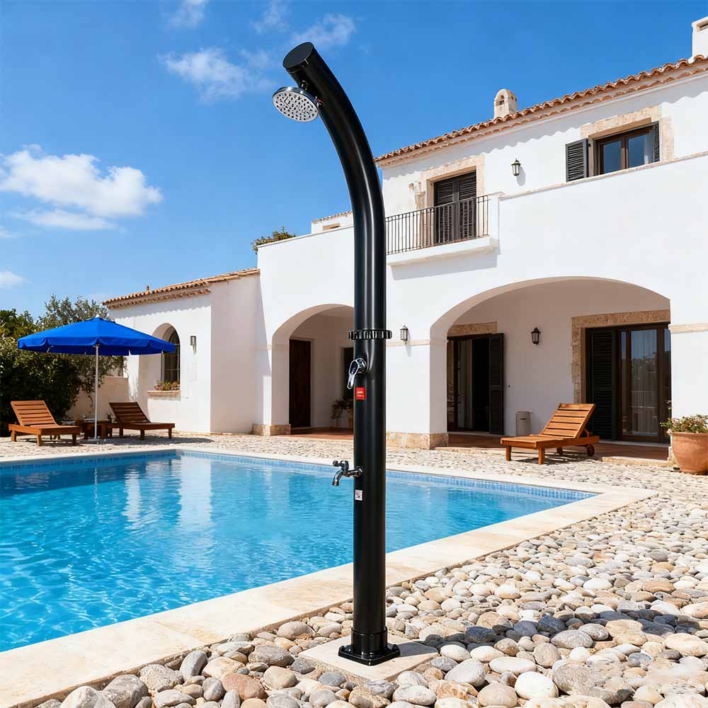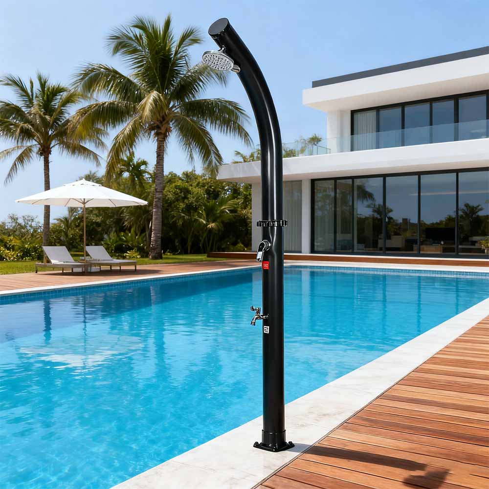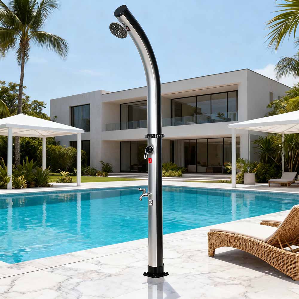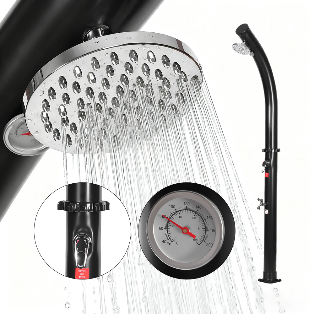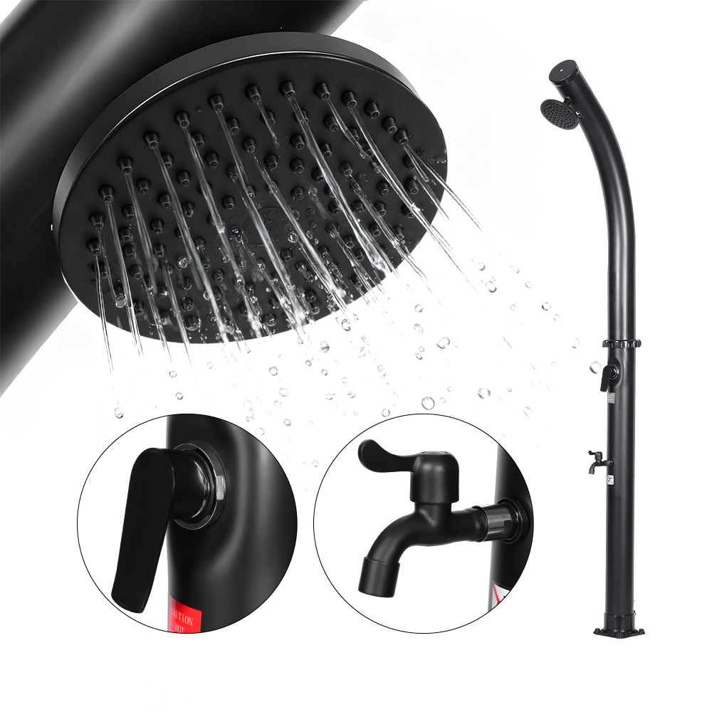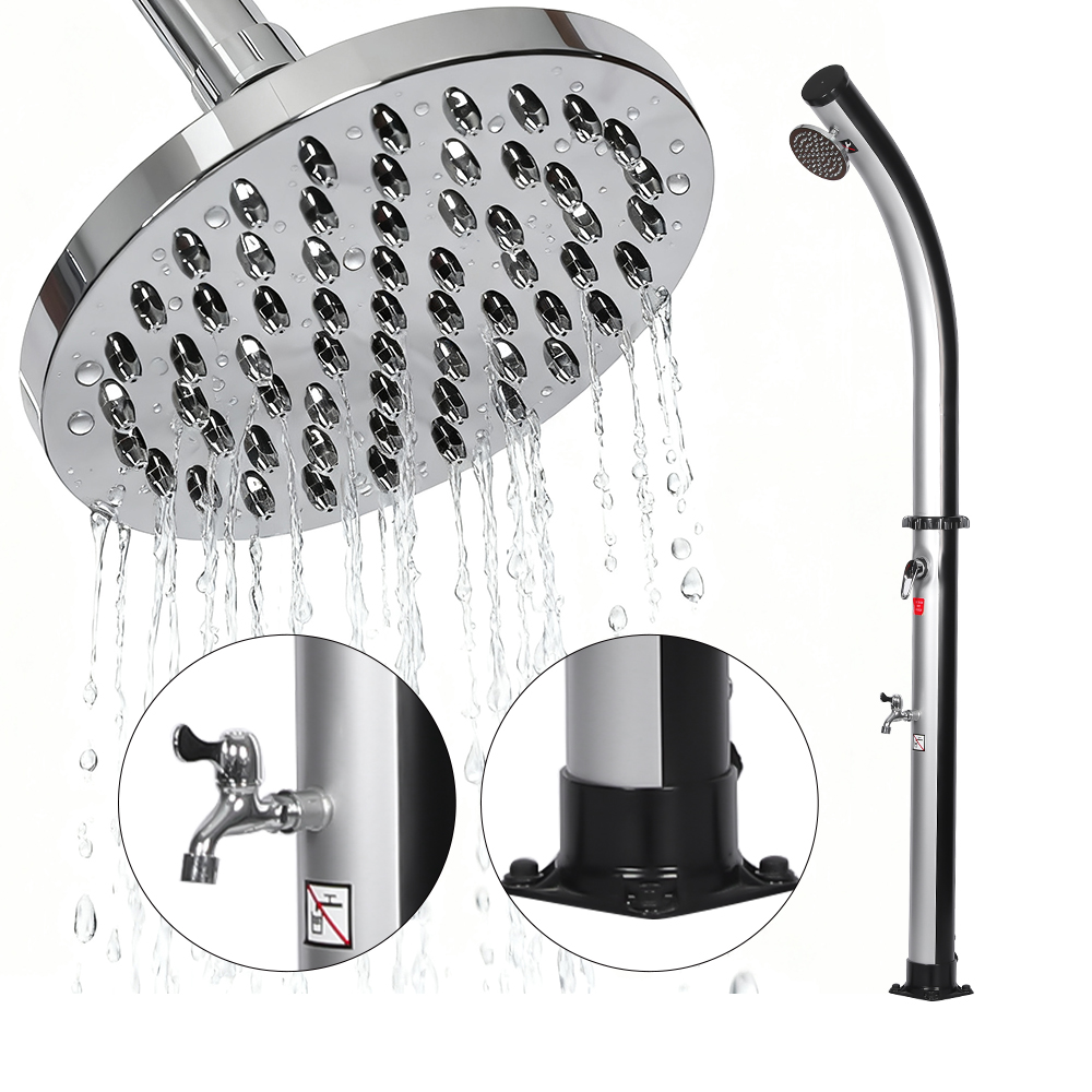 Po napełnieniu rury prysznicowej za pomocą węża ogrodowego woda w naturalny sposób nagrzewa się w słońcu, a zintegrowana armatura pozwala na łatwe ustawienie preferowanej temperatury. Zaprojektowany z myślą o wszechstronności, wolnostojący, wolnostojący, zewnętrzny prysznic solarny z głowicą prysznicową LY18L02 18L jest idealny na wycieczki na plażę, relaks przy basenie lub wypady na wieś, co czyni go doskonałym wyborem dla hoteli, domów wakacyjnych i bungalowów, zapewniając orzeźwiający komfort w dowolnym miejscu. Jest również wyposażony w wygodne złącze węża umożliwiające łatwe napełnianie i korek spustowy umożliwiający szybkie opróżnianie, zapewniając bezpieczne i łatwe przygotowanie do przechowywania w zimie.