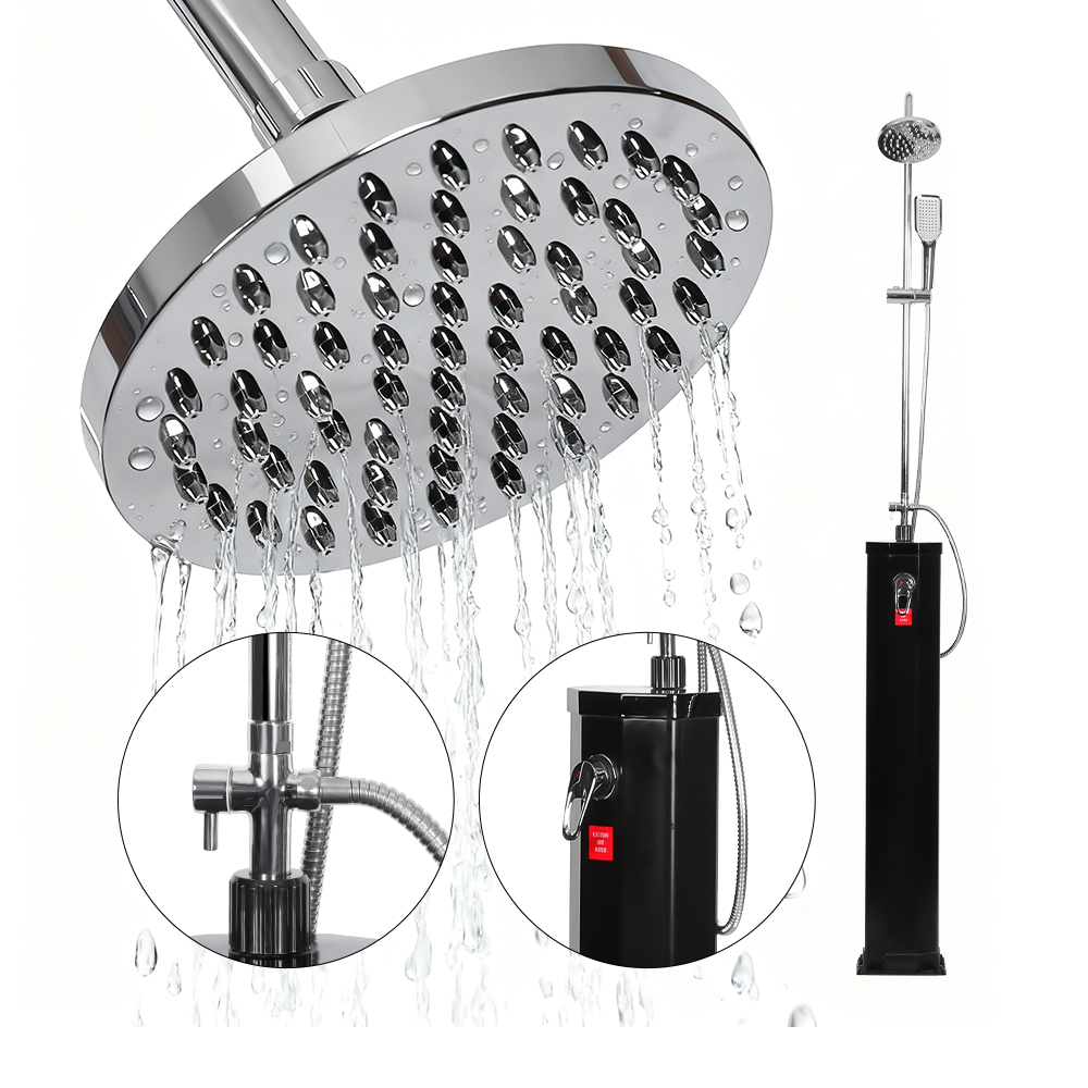 Ten prysznic słoneczny z PCV LY18L09-B 18L przy basenie z mobilnym prysznicem górnym ze stali nierdzewnej został zaprojektowany, aby zapewnić komfort i relaks w różnych miejscach na świeżym powietrzu, czy to w ogrodzie, przy basenie, czy na wycieczkach kempingowych, oferując nowoczesne rozwiązanie umożliwiające cieszenie się ciepłą wodą bez potrzeby zewnętrznych źródeł energii. Posiada ponadwymiarową deszczownicę z wbudowanym przegubem kulowym, który umożliwia łatwą regulację w zakresie do 180°, zapewniając elastyczność użytkowania i prostą konfigurację. Elastyczna głowica prysznicowa w stylu lasu deszczowego zwiększa doznania, umożliwiając łatwą kontrolę przepływu wody, tworząc kojące wrażenie przypominające spa podobne do stania pod naturalnym wodospadem. Razem te funkcje zapewniają odświeżające i konfigurowalne wrażenia pod prysznicem, dzięki czemu jest to idealne rozwiązanie dla każdego, kto szuka zarówno praktyczności, jak i relaksu na świeżym powietrzu.