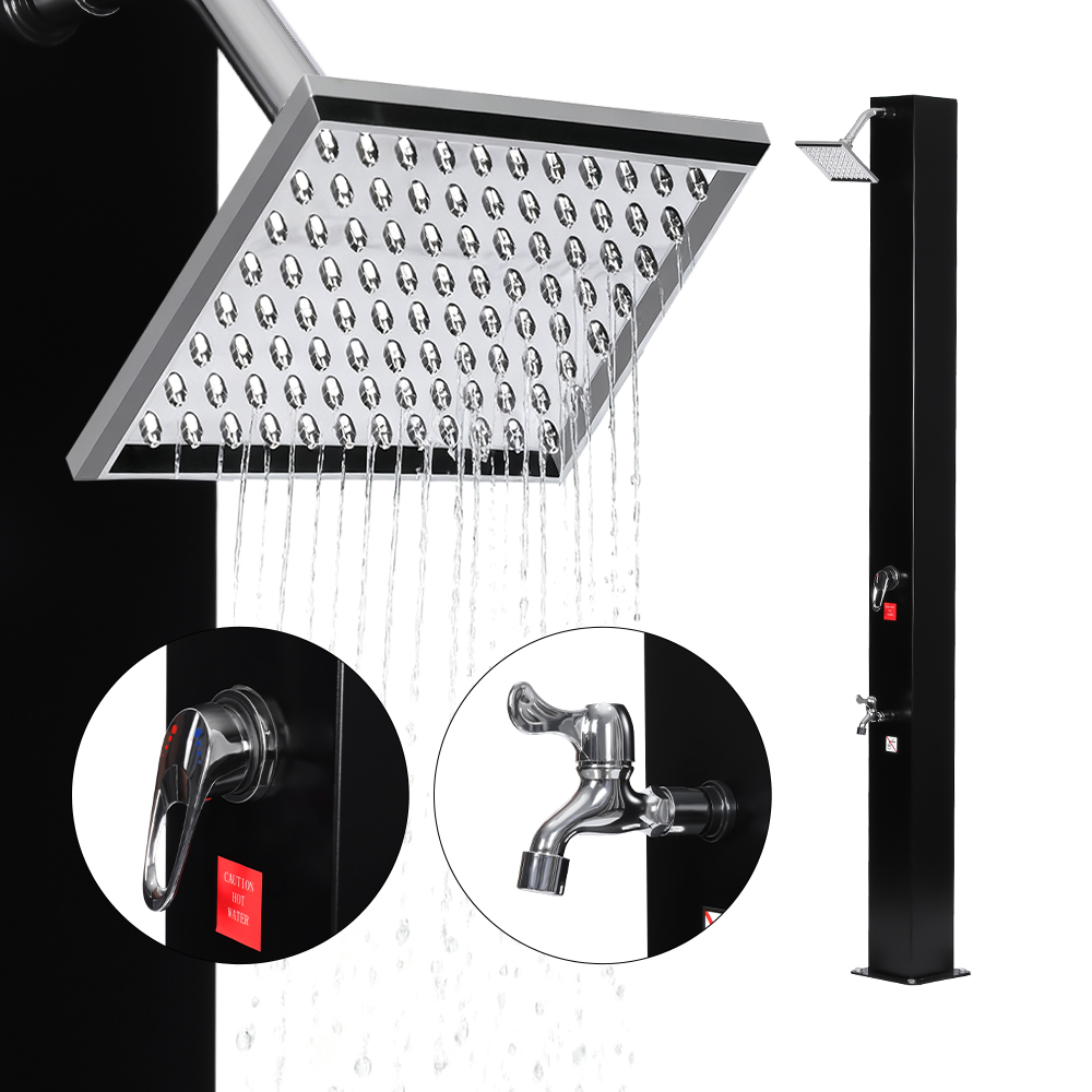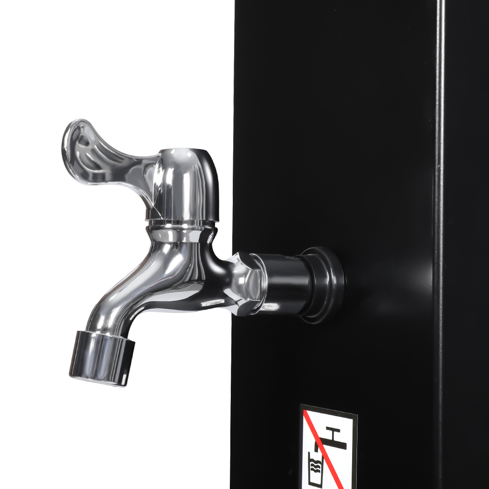 Ten zewnętrzny prysznic solarny o dużej wydajności LY35L04-SS został zaprojektowany tak, aby zapewnić wygodną i wygodną kąpiel na świeżym powietrzu, wykorzystując energię światła słonecznego do podgrzewania wody do około 60°C, eliminując zapotrzebowanie na energię elektryczną. Napełnienie rury prysznicowej nie wymaga żadnego wysiłku – wystarczy podłączyć standardowy wąż ogrodowy i prysznic jest gotowy do użycia. Dla dodatkowej wygody wbudowany metalowy stojak pozwala na łatwy dostęp do niezbędnych akcesoriów pod prysznic, takich jak żel czy szampon, a przemyślanie umieszczony otwór spustowy na dole zapewnia szybkie i skuteczne usuwanie wody, zapobiegając zastojom wody. Całość urządzenia składa się poprzez dokładne skręcenie ze sobą części, co zapewnia stabilną konstrukcję, a do bezpiecznej pracy w warunkach zewnętrznych wymagane jest odpowiednie zakotwienie w podłożu. Aby instalacja i użytkowanie były proste, dołączono obszerne wielojęzyczne instrukcje, dzięki czemu są one dostępne dla użytkowników w różnych regionach.