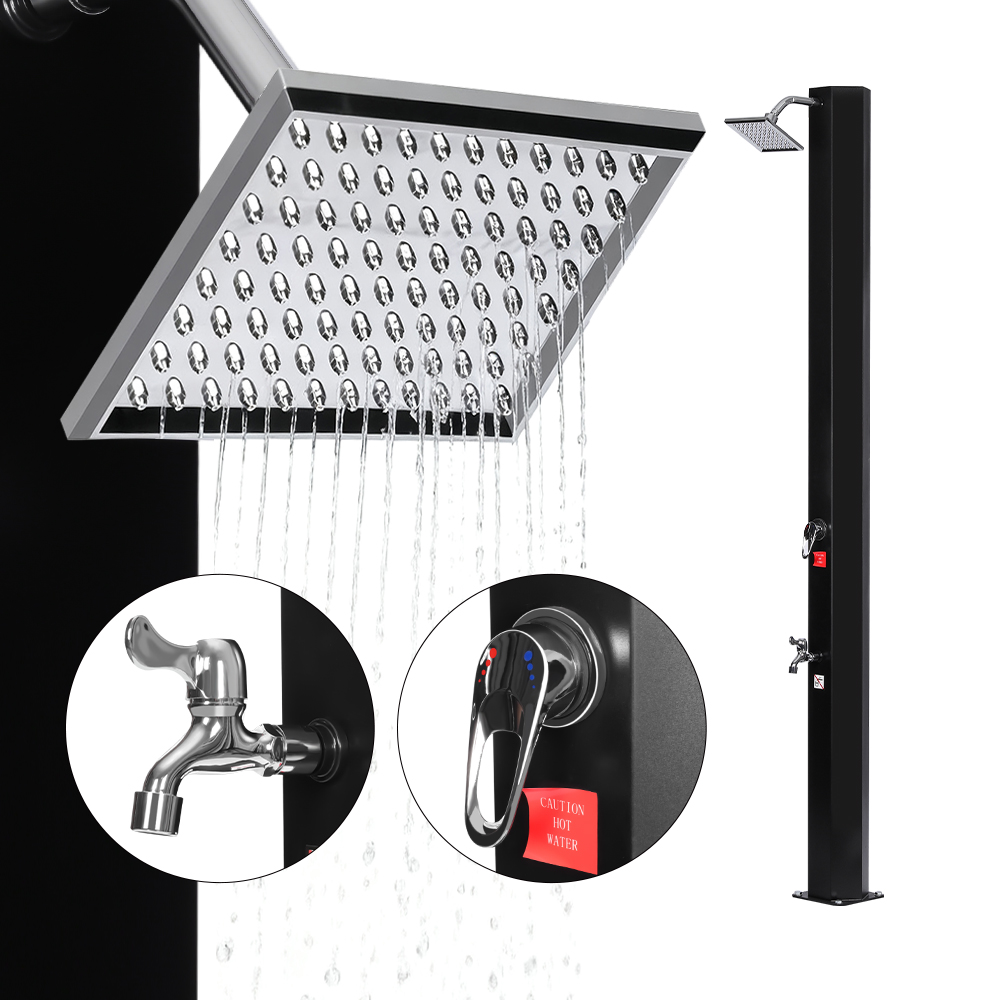 Dzięki dużej rurze prysznicowej ten wygodny prysznic słoneczny LY35L05-SS zapobiegający gromadzeniu się wody skutecznie podgrzewa wodę do 60°C w pełnym świetle słonecznym, eliminując zapotrzebowanie na energię elektryczną i czyniąc go idealnym do zrównoważonego użytku na zewnątrz. Wystarczy podłączyć standardowy wąż ogrodowy do napełnienia rury prysznicowej, a cała rodzina będzie mogła cieszyć się orzeźwiającym i wygodnym prysznicem w ogrodzie, przy basenie, a nawet na kempingu. Przemyślanie zintegrowana metalowa taca zapewnia wygodne miejsce do przechowywania żelu pod prysznic i innych niezbędnych akcesoriów w zasięgu ręki, a otwory drenażowe w podstawie zapewniają płynny przepływ wody i zapobiegają jej gromadzeniu się. Dodatkowo prysznic zaprojektowano tak, aby można go było łatwo zdemontować, co pozwala na kompaktowe przechowywanie go, gdy nie jest używany, co czyni go szczególnie praktycznym podczas przechowywania i transportu poza sezonem.