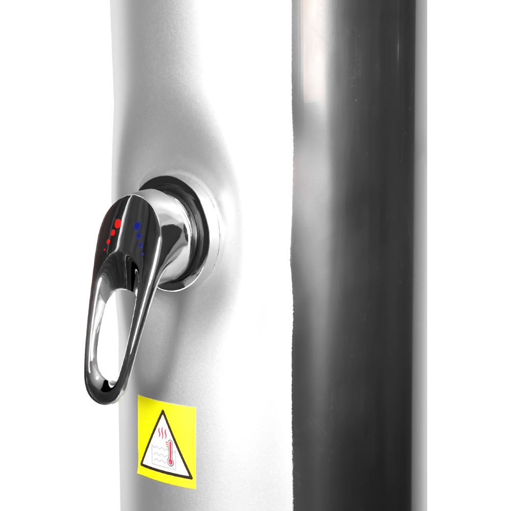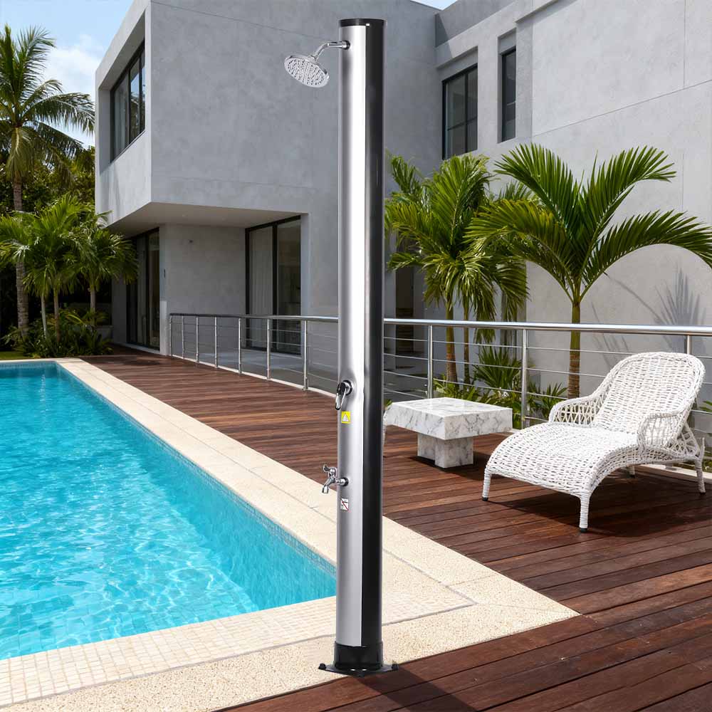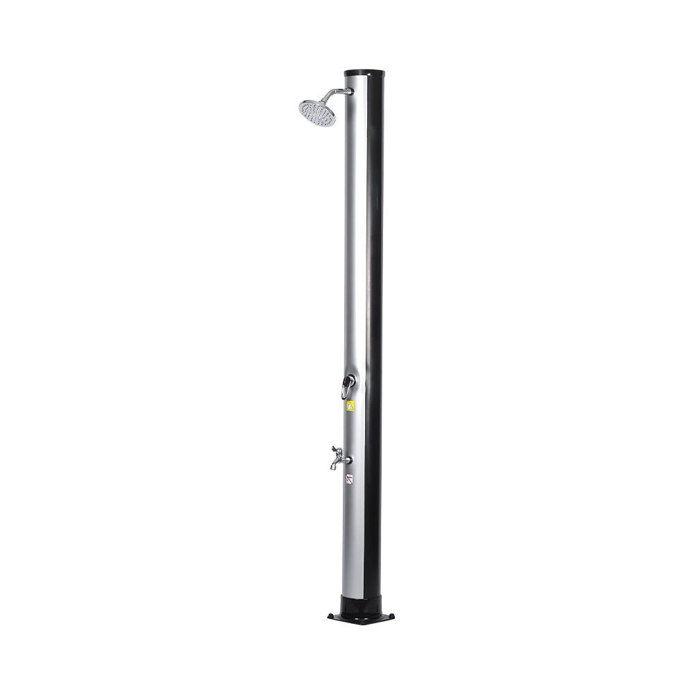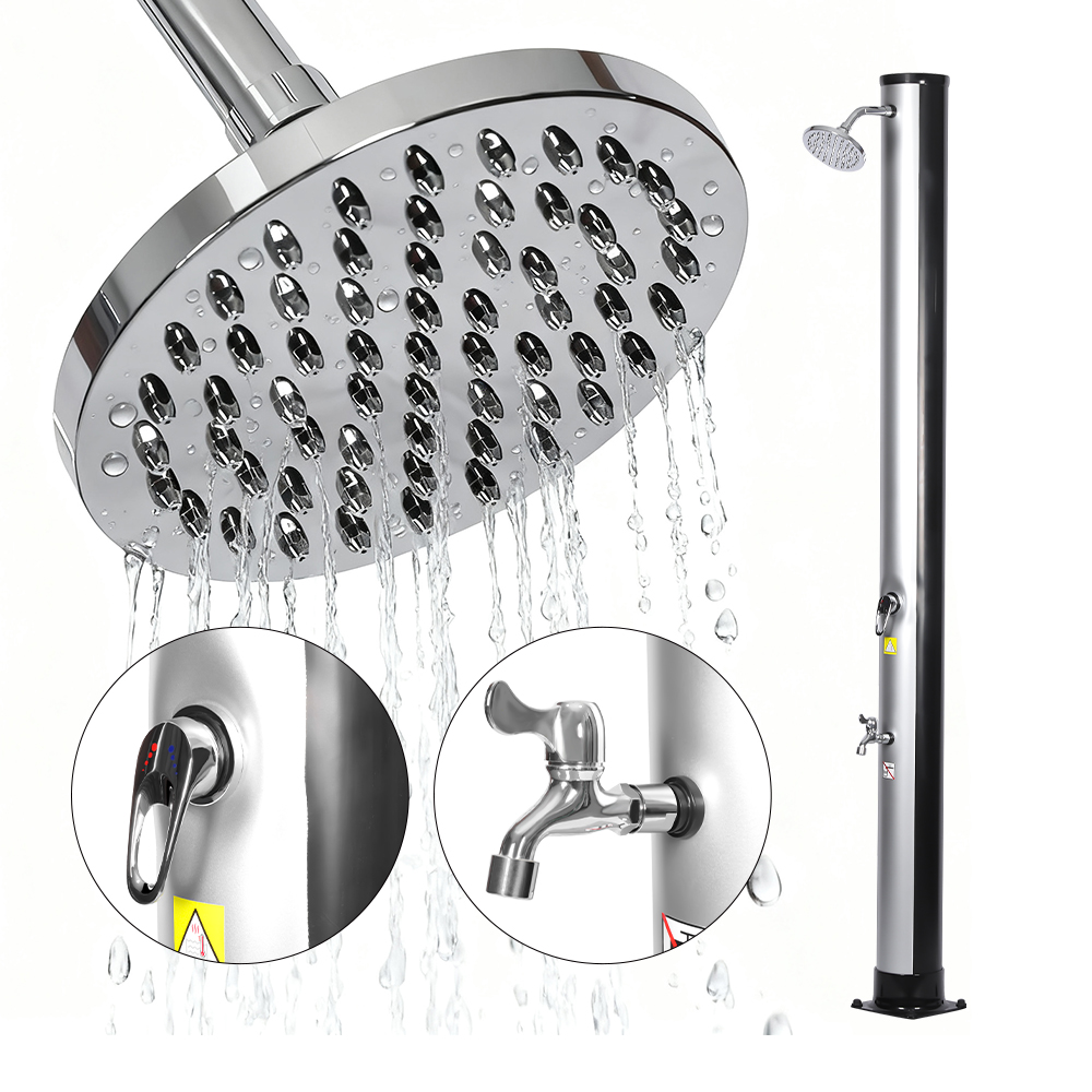 Obszerna rura prysznicowa tego przenośnego, ekologicznego prysznica słonecznego na zewnątrz LY35L06 wykorzystuje energię słońca do podgrzewania wody do temperatury 60°C, nie wymagając prądu i oferując przyjazne dla środowiska rozwiązanie do kąpieli na świeżym powietrzu. Wystarczy podłączyć standardowy wąż ogrodowy do napełnienia rury prysznicowej, a cała rodzina będzie mogła cieszyć się rewitalizującym prysznicem w ogrodzie, przy basenie lub na biwaku. Praktyczna, wbudowana metalowa taca pozwala na łatwy dostęp do niezbędnych akcesoriów prysznicowych, takich jak mydło i szampon, a szczeliny drenażowe na dole zapobiegają gromadzeniu się wody, zapewniając czystość i przyjemność. Obrotowa deszczownica o 360°, zamontowana na zintegrowanym przegubie kulowym, pozwala z łatwością regulować kierunek przepływu wody, tworząc przyjemne uczucie chłodu, a dodatkowy kran do spłukiwania stóp zapewnia wygodny sposób na szybkie odświeżenie. Zaprojektowany z myślą o wygodzie, ten prysznic można łatwo zdemontować, aby zapewnić kompaktowe i oszczędzające miejsce przechowywanie poza sezonem lub do transportu w podróży.